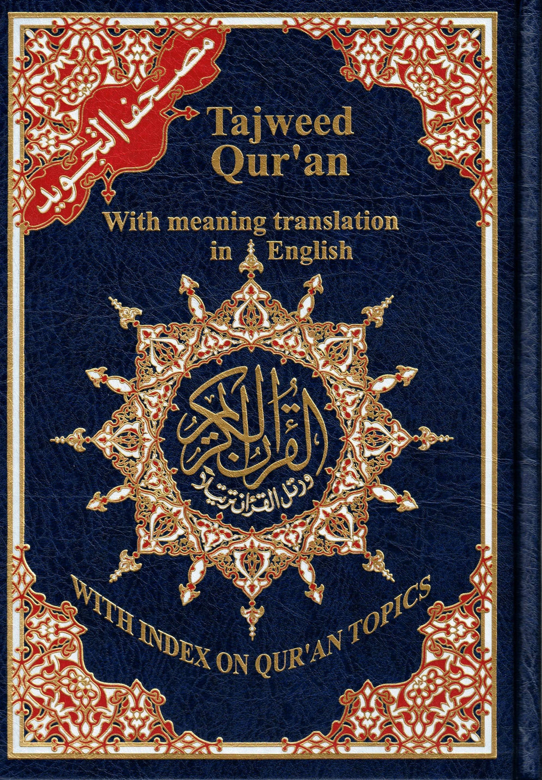 Koran + Übersetzung auf Englisch + Tajweed Regeln + Verzeichnis der Themen des Korans. Seitenzahl: 667