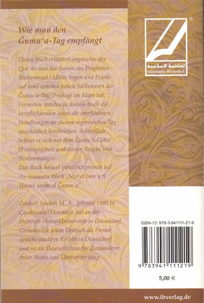Dieses Buch erläutert angesichts des Qurʾān und der Sunna des Propheten Muḥammad (Allāhs Segen und Friede auf ihm) welchen hohen Stellenwert der Ǧumuʿa-Tag (Freitag) im Islam hat. Fernerhin werden in diesem Buch die verpflichtenden sowie die empfohlenen Handlungen an diesem segenreichen Tag anschaulich beschrieben. Schließlich befasst es sich mit dem Ǧumuʿa-Gebet (Freitagsgebet) und dessen Regeln und Bestimmungen. Das Buch basiert inhaltlich primär auf As-Suyuutis Werk „Nur al lumʿa fi Ḫaṣaiṣ yaum al Ǧumuʿa“.